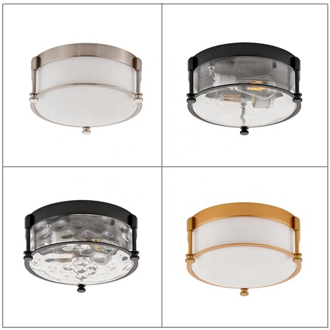 2-light E12 Clear Seed Glass Shade Plafonniers Vintage Farmhouse Couloir Salle de bain Tambour Encastré Lumières Home Decor OEM