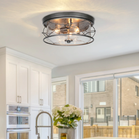 Vintage noir fer cadre graine verre abat-jour plafonnier chambre E26 Dimmable blanc chaud LED salle de bain escalier encastré OEM